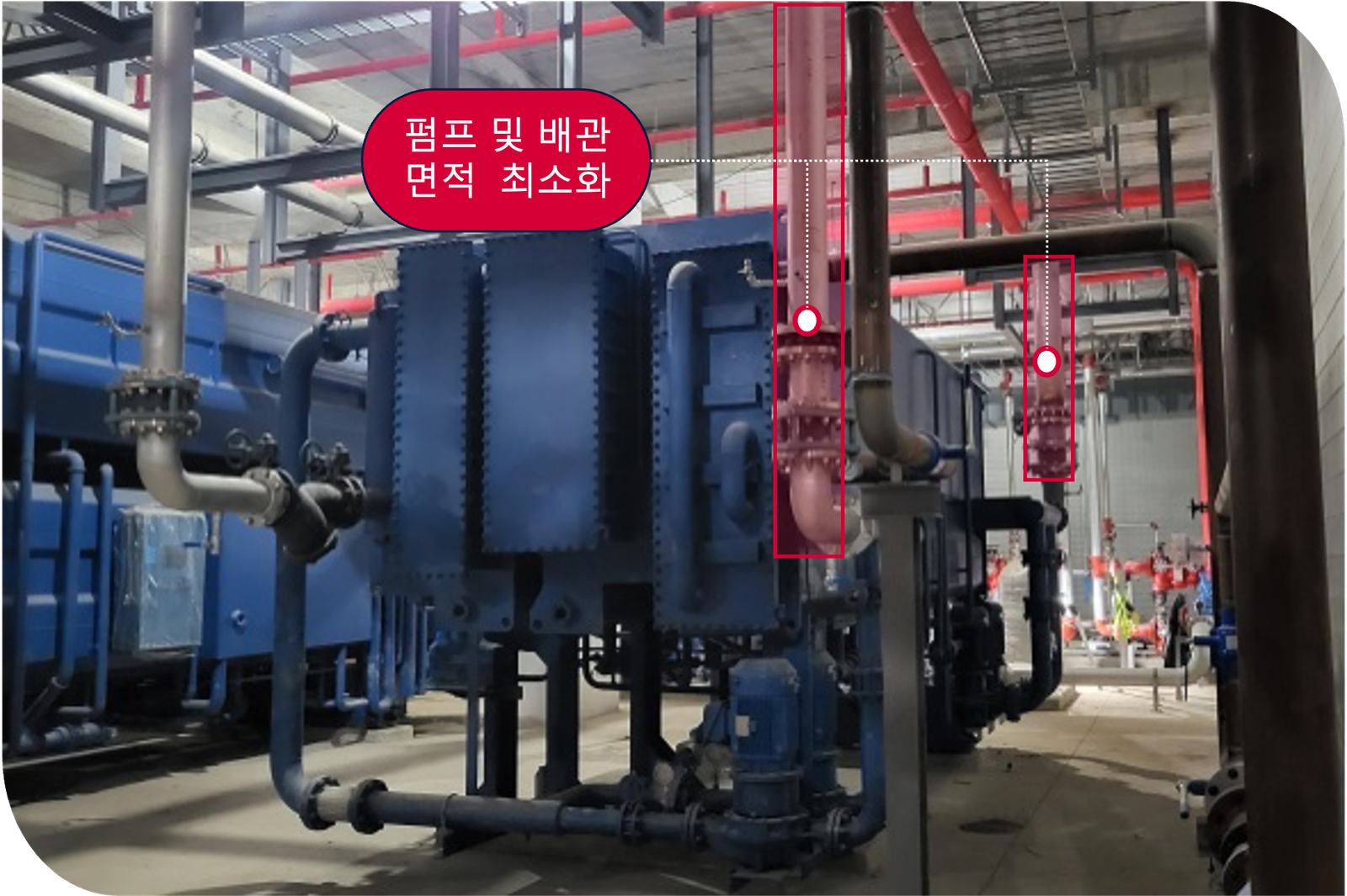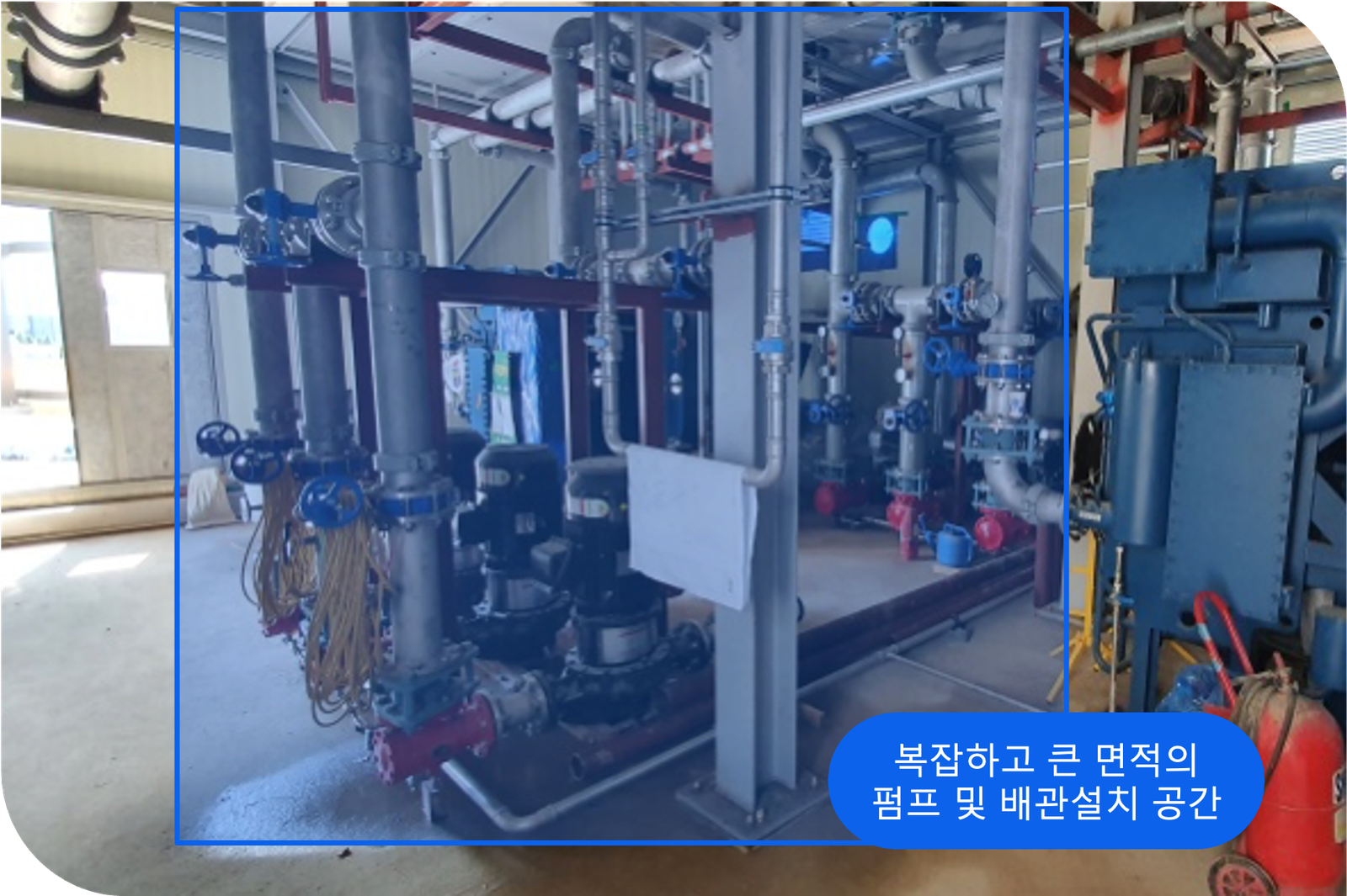 기계실 내 펌프 및 배관 면적 축소로 인해 기계실 면적이 감소하며 이에 따라 설비 인원(용접공, 설비공 등)또한 줄어들기 때문에 안전사고 및 중대재해법 발생 확률이 낮아집니다.